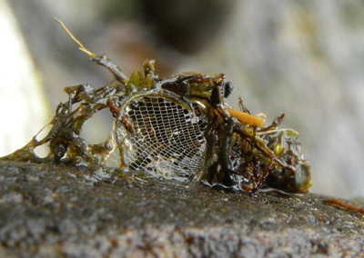 зом, они не занимаются активным поиском или ловлей пищи, ее доставляют им «к столу» течением реки. Мелкоячеистые ловушки Hydropsychoidea можно найти и во мху, и в трещинах неживых древесных стволов, и в скоплениях опавшей листвы. Заводи озер, куда наносит много планктона, или участки рек, куда в большом количестве сливаются бытовые отходы, способны прокормить несметные количества Hydropsychoidea. Поэтому стрессы, связанные с переуплотнением популяции сверх емкости среды, запрограммированы изначально. Надо сказать, что эти существа демонстрируют высокую «обороноспособность» и защищают свое жизненное пространство от проникновения конкурентов либо с помощью устрашающего шума, либо силовой борьбы, если таковая неизбежна.